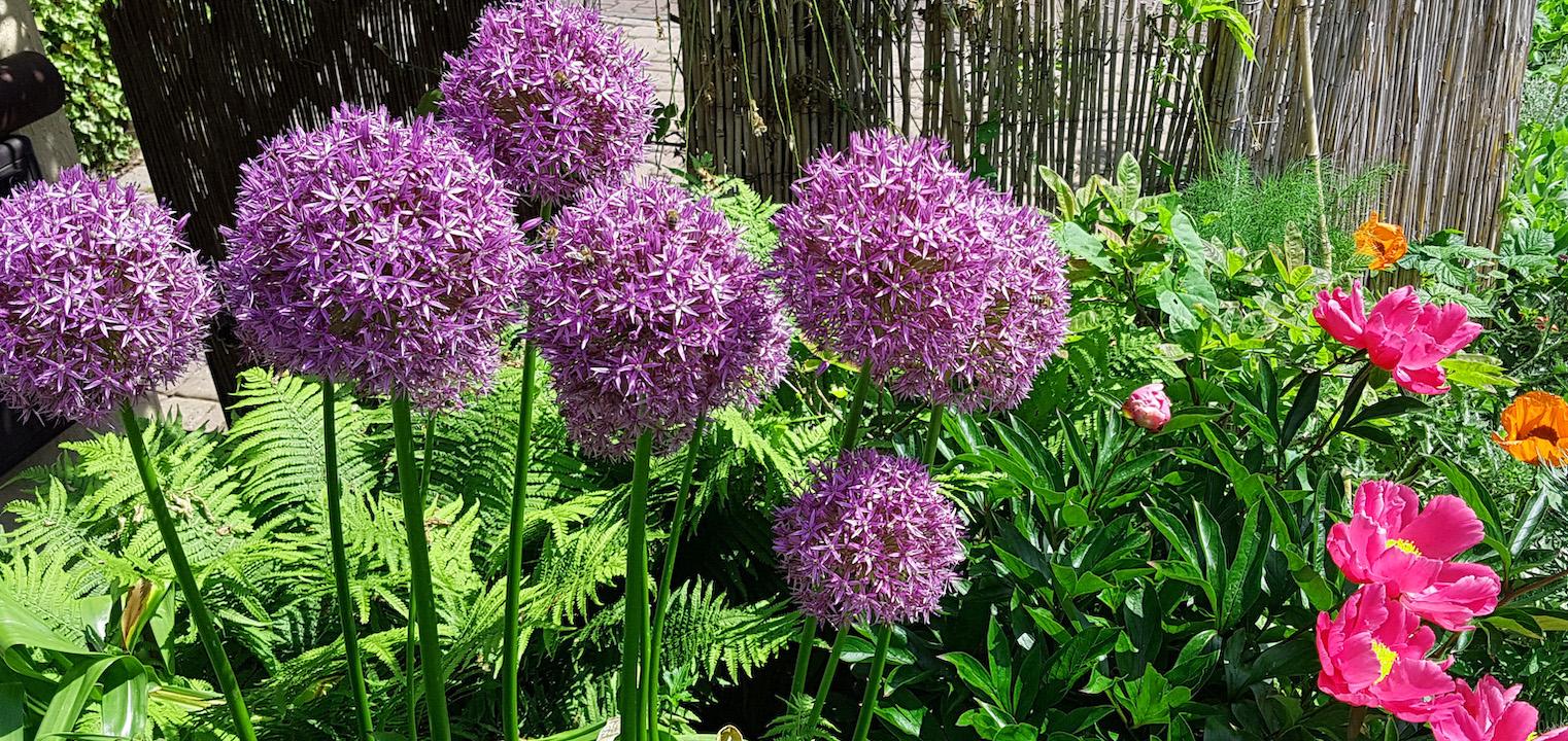 Najbardziej spektakularnie wygląda czosnek ozdobny - jego fioletowe, różowe lub białe kule unoszą się nad rabatą i przyciągają wzrok swoją formą. Są lekkie, geometryczne i niezwykle eleganckie. Trudno uwierzyć, że to ta sama roślina, która później trafia do kuchni i nadaje potrawom tak intensywny charakter.