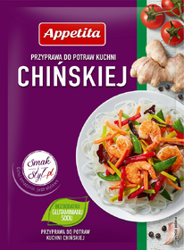 - Kurczaka oczyścić z błon, pokroić w kostkę, obtoczyć w przyprawie do potraw kuchni chińskiej.