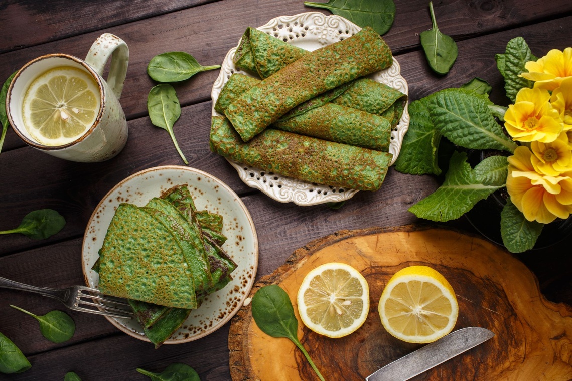 Szpinakowe naleśniki z kremowym serkiem i łososiem