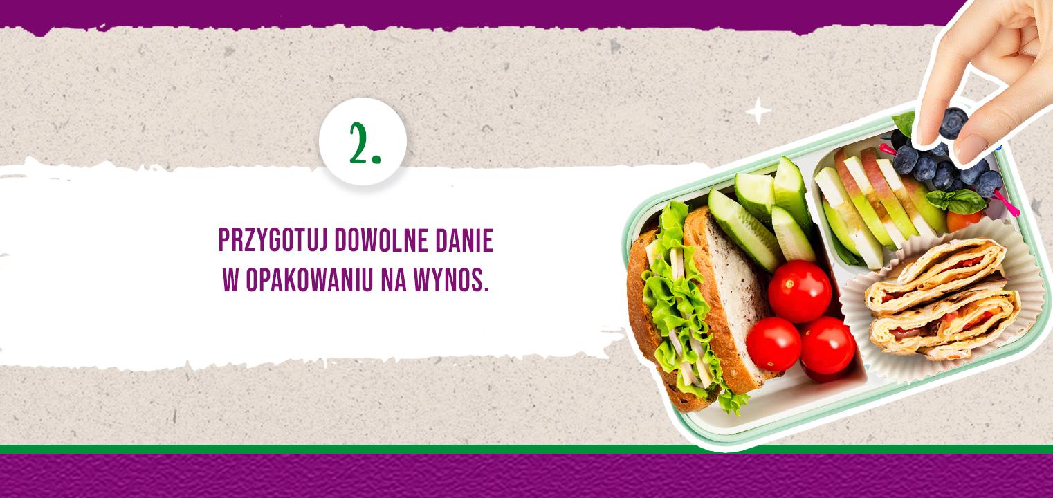 2. Przygotuj dowolne danie dla siebie, dziecka, sąsiadki czy partnera w opakowaniu na wynos – nieważne, najważniejsze, by posiłek był pomysłowy i wyglądał wyjątkowo: kolorowo, ciekawie, apetycznie!